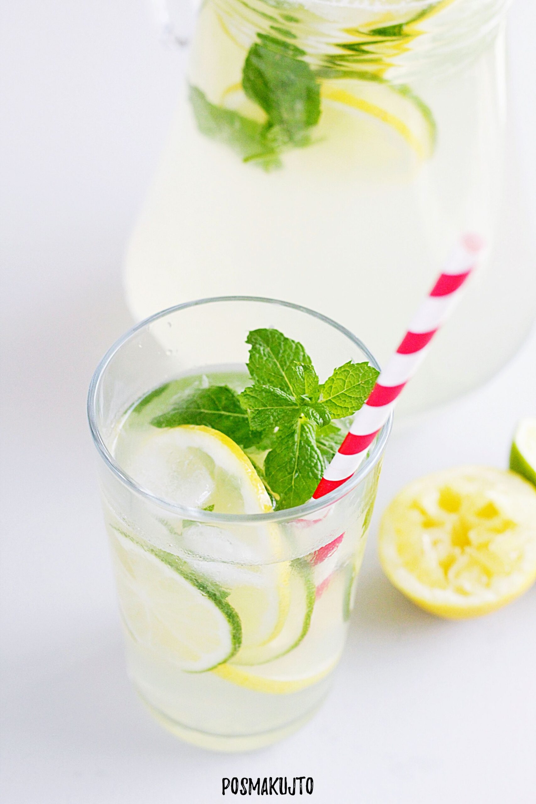 - Do dużego dzbanka wlać 1 litr wody, dodać sok z cytryny i limonki. Do dużego kubka wlać 250 ml ciepłej wody, dodać miód i wymieszać aż cały się rozpuści. Wówczas przelać do dzbanka i wymieszać. Dodać liście świeżej mięty i po kilka plasterków cytryny i limonki. Odstawić na 1 godzinę do lodówki. Podawać z kostkami lodu.